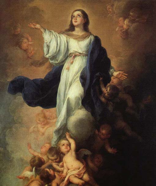 Sin duda alguna, nos dice Royo Marín, irían con Ella todos los Angeles del Cielo, aclamándola como su Reina y Señora, como bien lo han descrito poetas y pintado pintores, pero sin necesidad de ser llevada o ascendida por Angeles, pues ella sola se bastaba con la agilidad de su cuerpo santísimo, ya glorificado por su gloriosa resurrección.